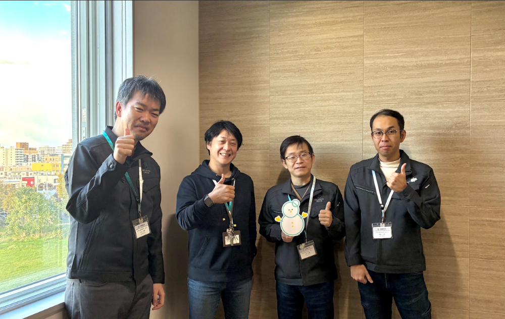 Three new members joined us in October! From left, they are Maruyama Masaoki, in charge of accounting, Ohashi Fuminobu, in charge of intellectual property, and Hoshizaki Shingo, in charge of machinery and equipment!