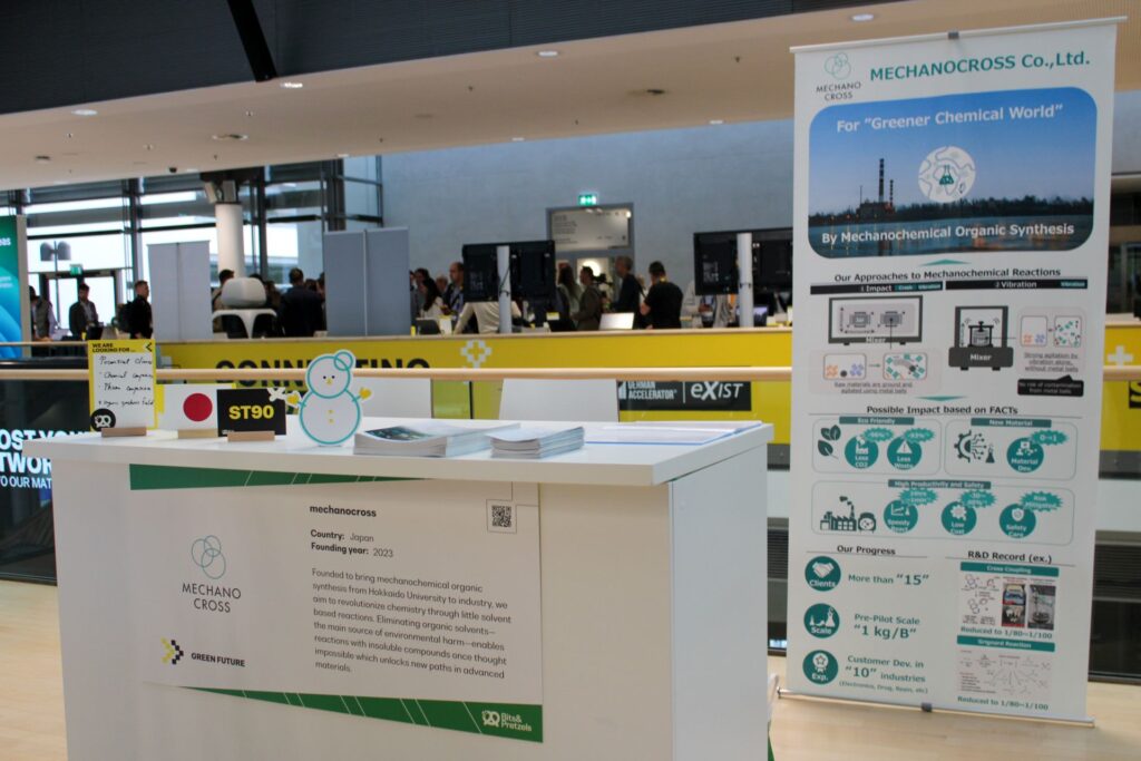 At our booth, we introduced MECHANOCROSS and shared our vision for solvent-free chemistry, while also joining networking sessions such as SuperConnectors and strengthening ties with the accelerator Start2Group.